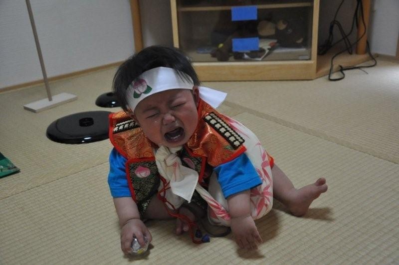 一升米をもって 将来、食べることが困らないように、誕生日会で一升米を持った息子。昨年、五月人形を買った時にサービスで付けてもらった桃太郎の衣装に身をまとい、一升のお米(1.8キロ)を担いでみた。さっそうと風呂敷に入れた一升米を担いだ息子であるが、重かったみたいで、床に体を倒しギャン泣き。何度かトライさせてみたが、一升のお米は重く泣くのみ。何とか支えながら数歩は歩けたものの、1才児にとっては大きな課題であったようだ(笑)